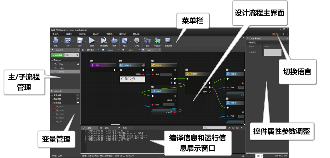 RPA作為人工智能領域的的先進工具,其底層設計是Python語言,支持拖拉拽&可視化方式進行流程設計。讓更多編程小白也能輕松設計出流程。