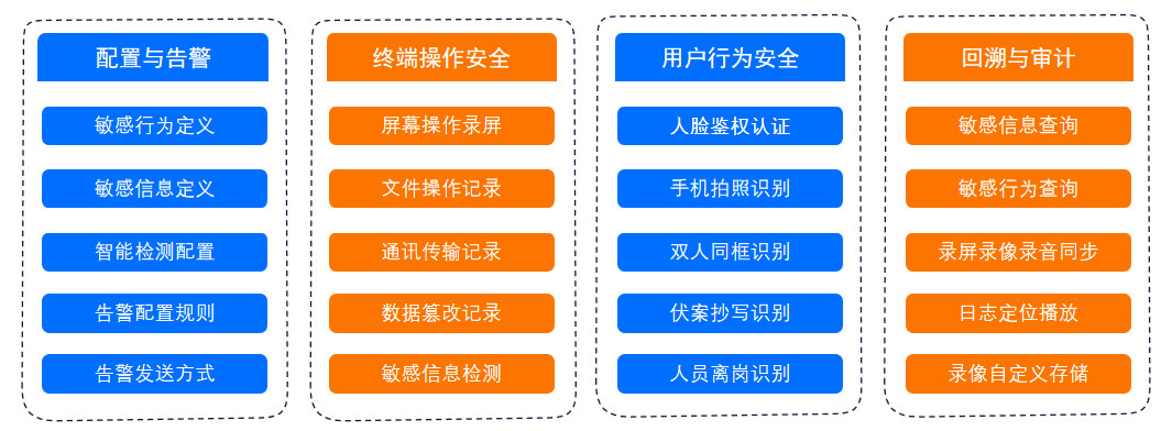 iS-CDA主要具(ju)備兩(liang)大(da)能力域(yu),基于強大的終端錄屏和數據(ju)采集功能,可以(yi)幫助(zhu)企業完善其內(nei)控合規(gui)管理。