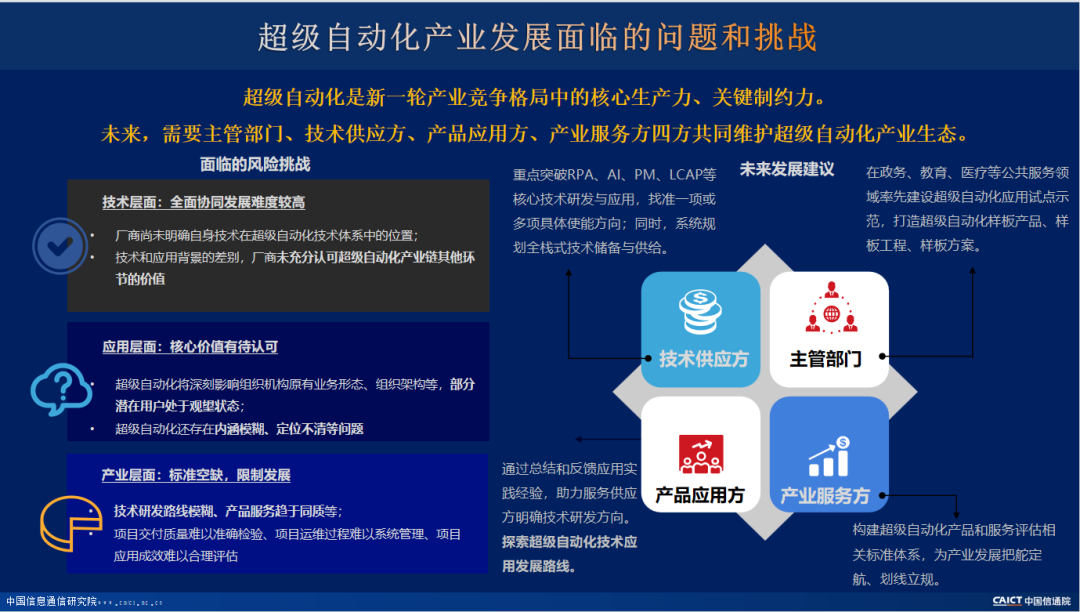 超級(ji)自動化可以打通數據、應用和業(ye)務的(de)三(san)重孤島,實現(xian)全局優化。創新驅動與技(ji)術賦能協同牽引,推動了超級(ji)自動化的(de)發展。