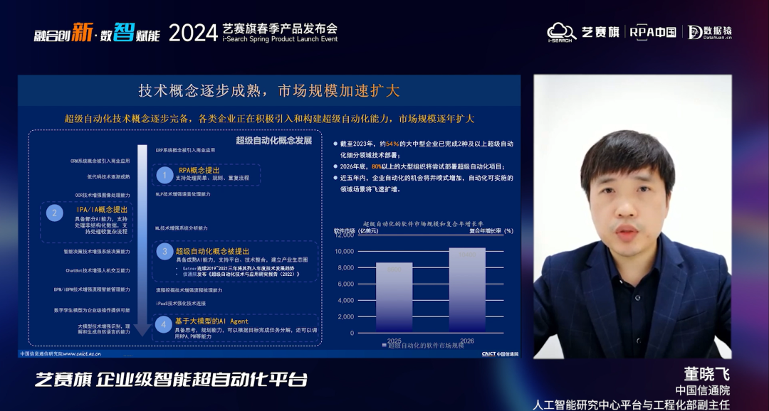 經過近(jin)五年的發展,超自動化技(ji)術(shu)(shu)及產業在國內的實(shi)際發展(zhan)情(qing)況如何?在大模型等創新技(ji)術(shu)(shu)的加持下(xia)哪些能力得到增強?目前行(xing)業標(biao)準制定情(qing)況如何?